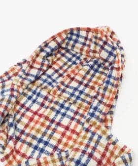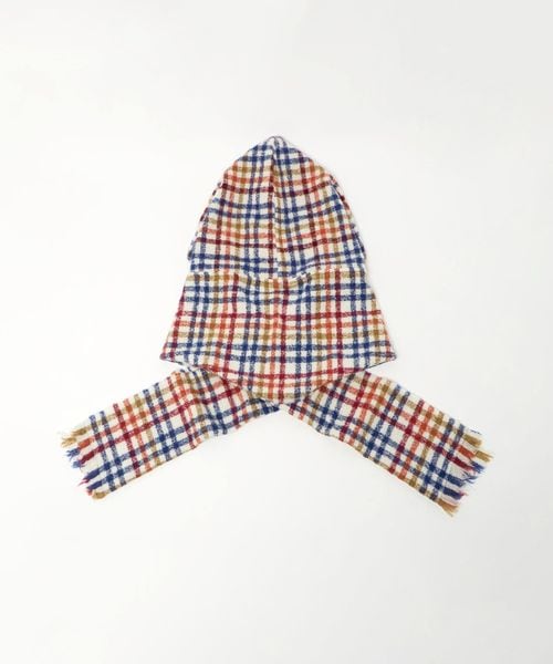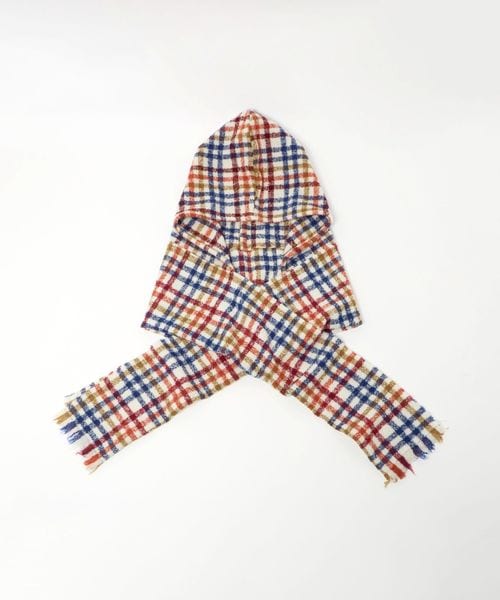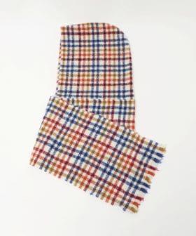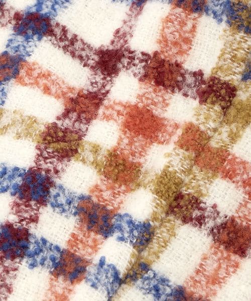 キャッチーな色合いのチェック柄が、冬の装いに鮮やかなアクセントをプラスする薄手のマフラー。