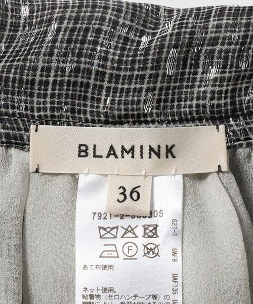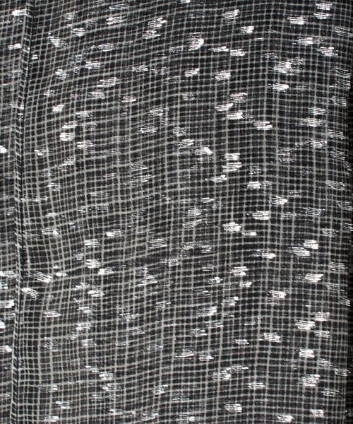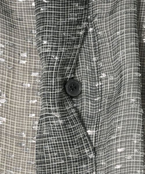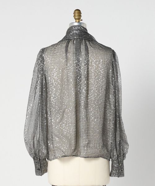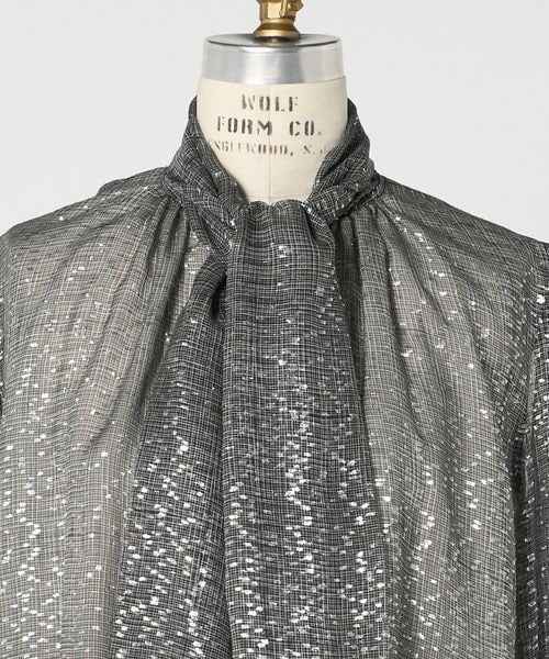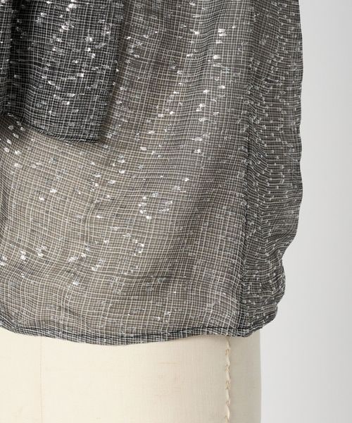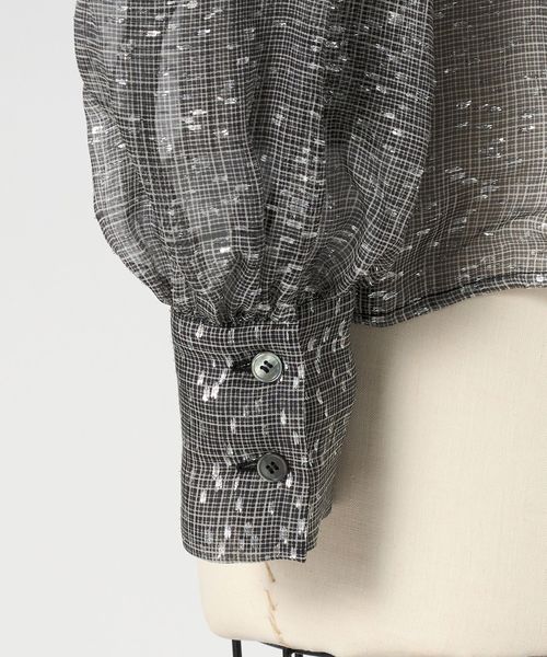モノトーンのシアーなチェックにのせたラメプリントが華やかに映えるブラウス。