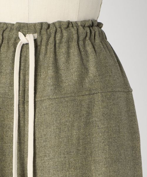あたたかみのあるメランジカラーの素材にナチュラルカラーのドローコードを配したイージーパンツ。