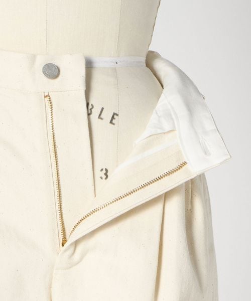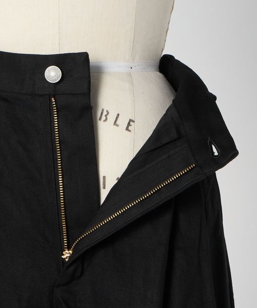 タックデザインから自然と広がるワイドシルエットが特徴のデニムパンツ。