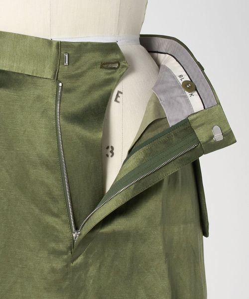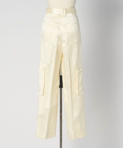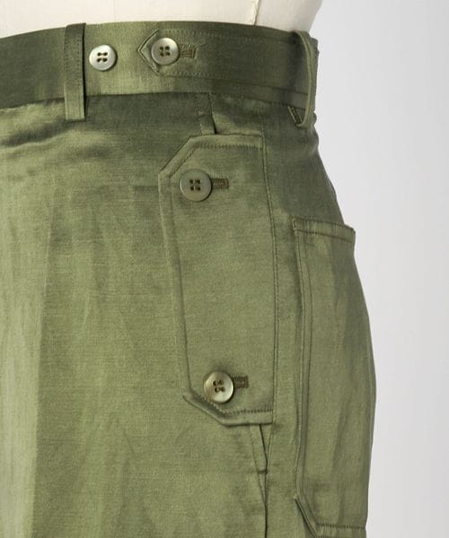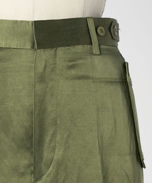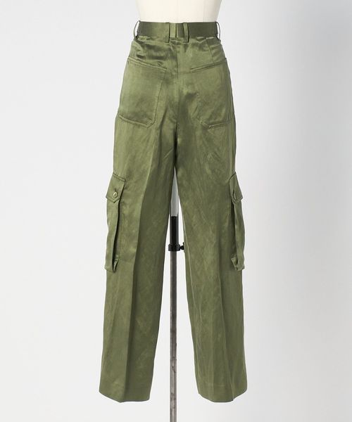 大きめなサイドのカーゴポケットデザインと艶のあるドレッシーな素材のバランス感が特徴。