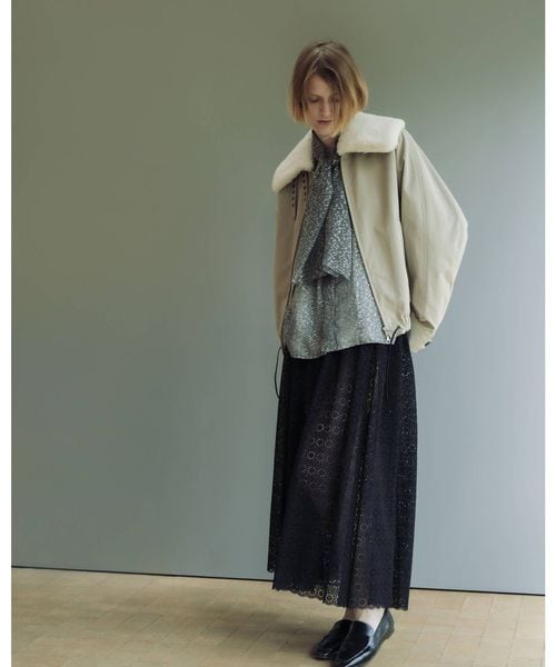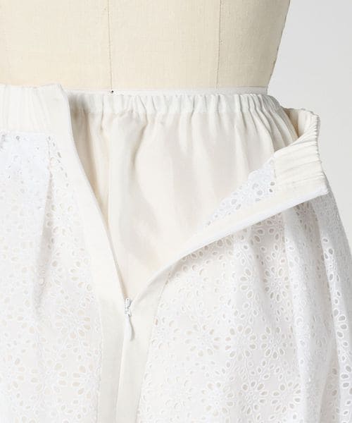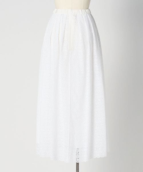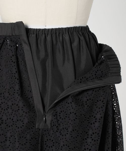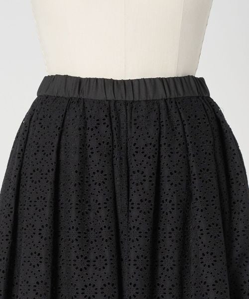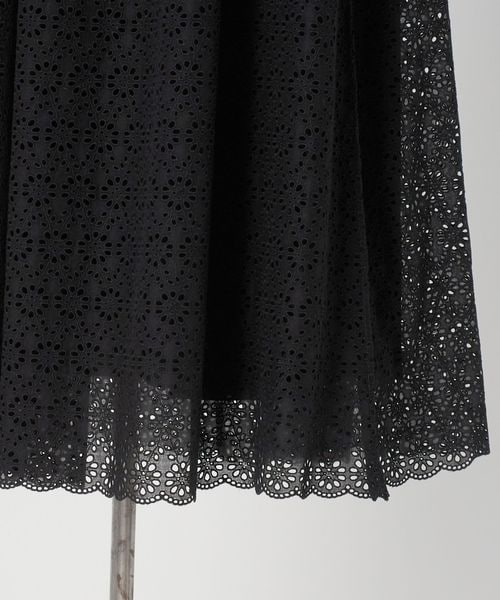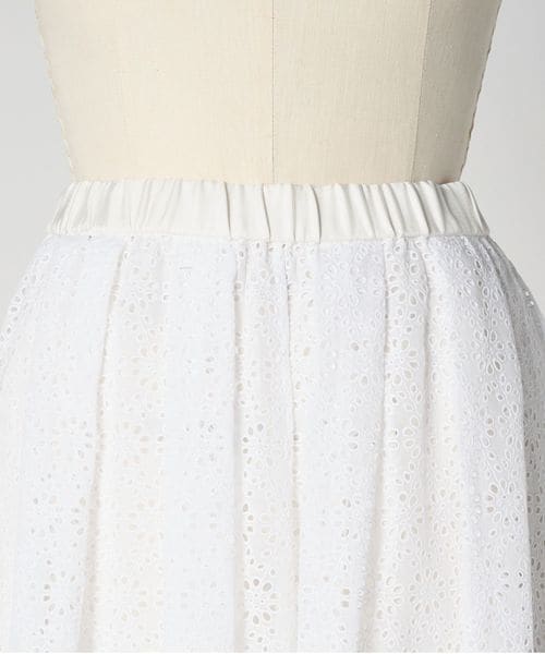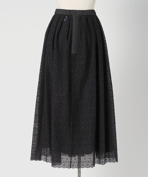 透けのある美しい刺繍素材が上品に映えるギャザーロングスカート。
