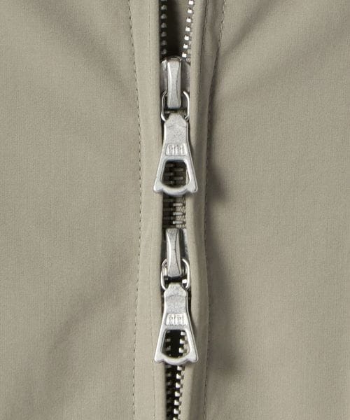 コットンシルクのナチュラルカラーの素材が上品さを添えるジップアップブルゾン。