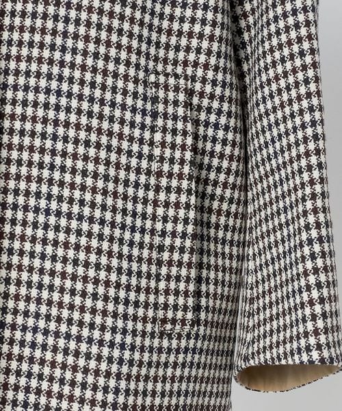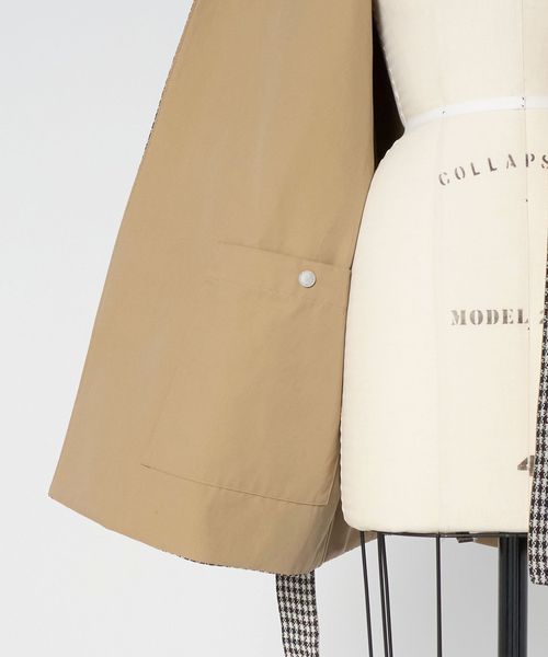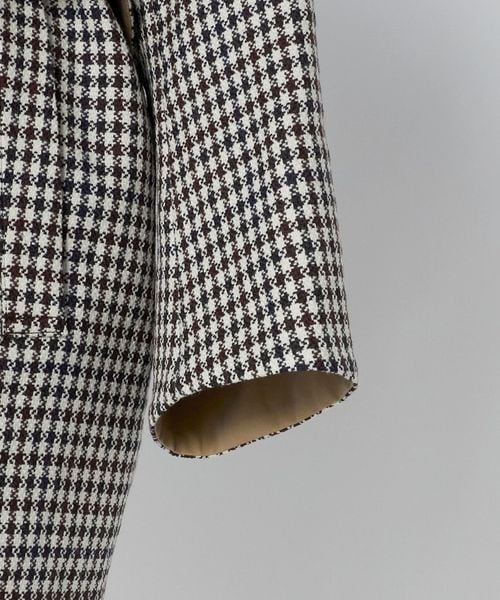 チェック柄の毛素材の裏側はコットンギャバジン生地をケヌキ合わせにした軽やかな質感も特徴です。