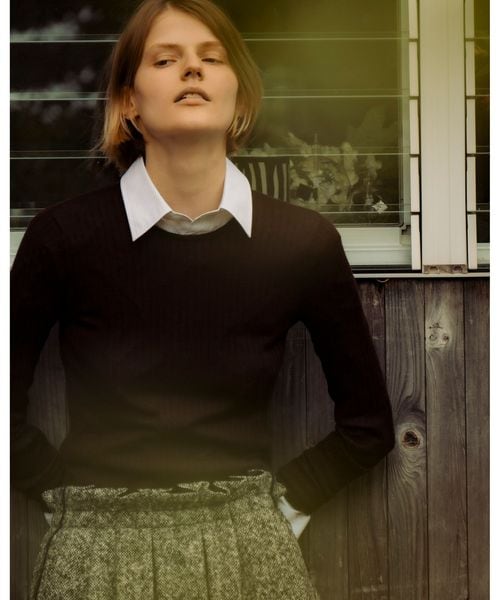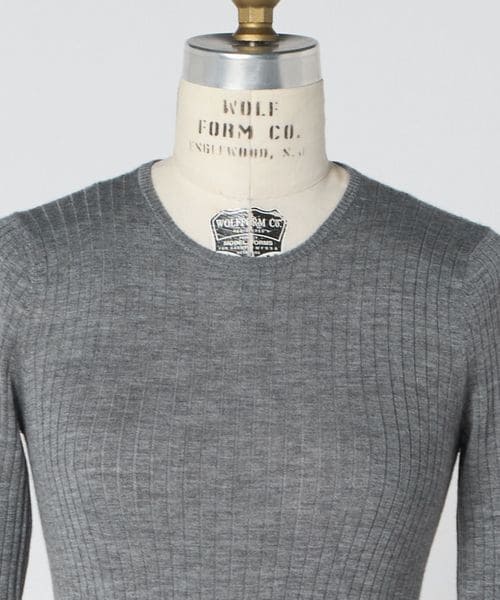 なめらかな手触りが特徴のリブ編みのクルーネックニット