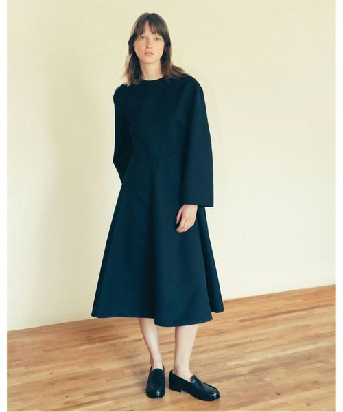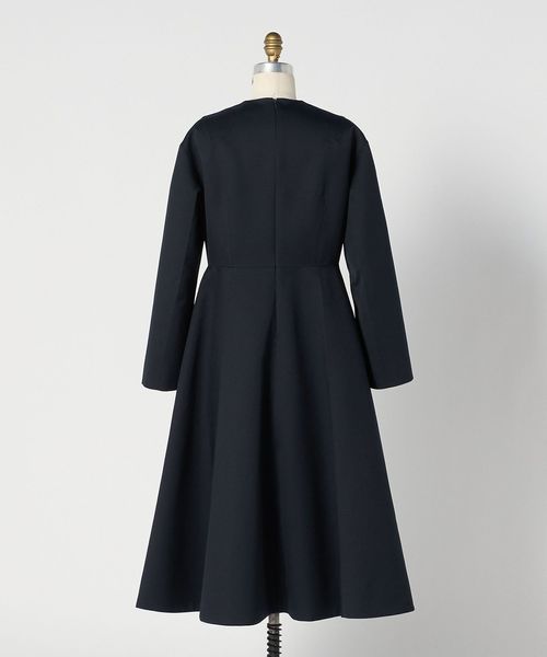 ウエストラインを美しく引き立てるシェイプされたフォルムと、優雅に広がるフレアシルエットが魅力のドレス。