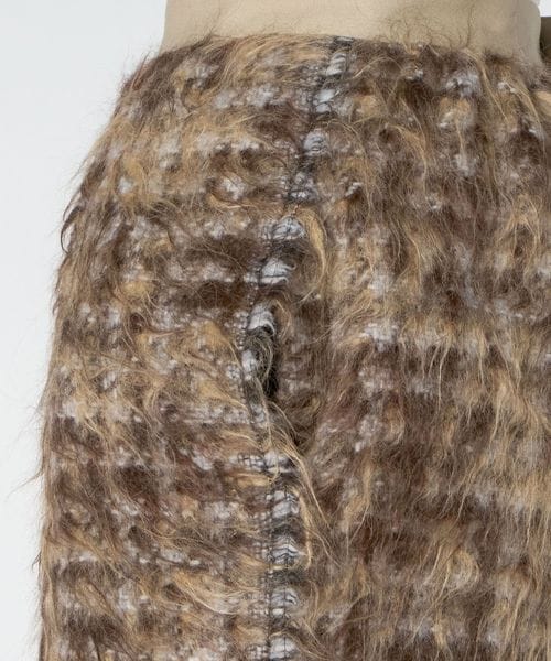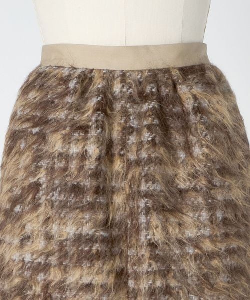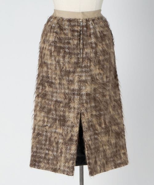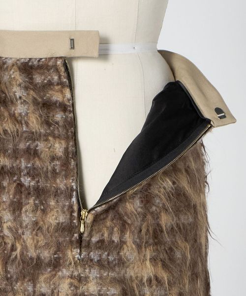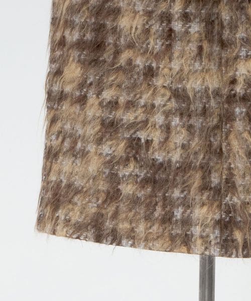シャギーな風合いとトラッドなチェック柄のコンビネーションが印象的なスカート。