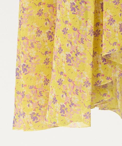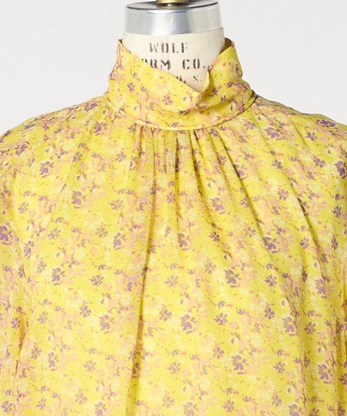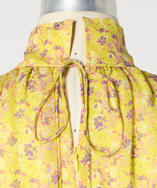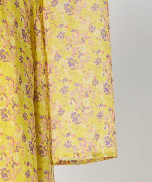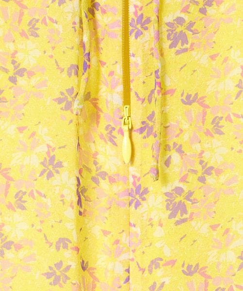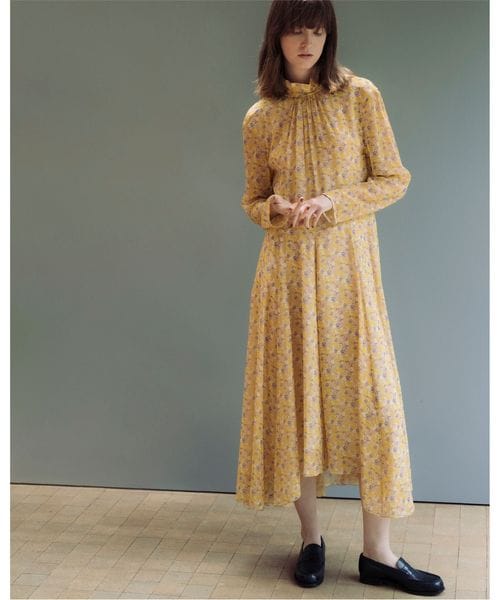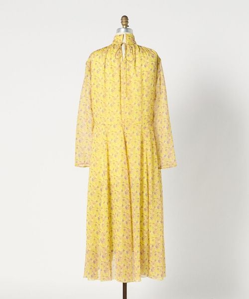 鮮やかなイエローカラーにのせたノスタルジックな小花柄が印象的なロングドレス。