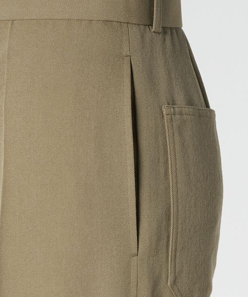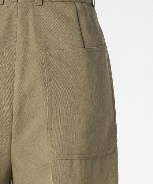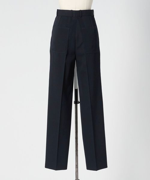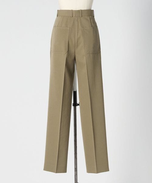 腰で止まるストレートシルエットで仕上げたベーシックなパンツ。