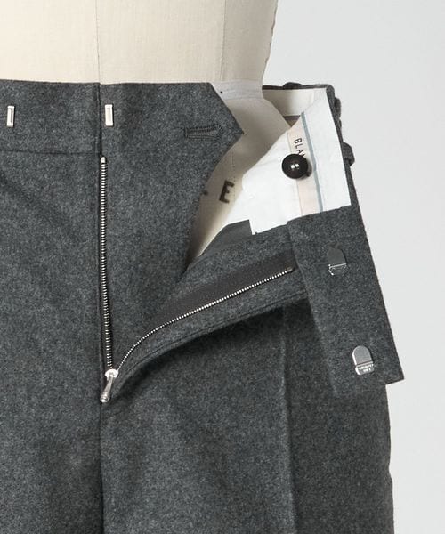 フラノ素材を使用したやわらかな質感が魅力のストレートシルエットのパンツ。