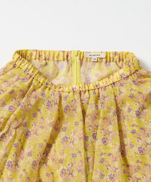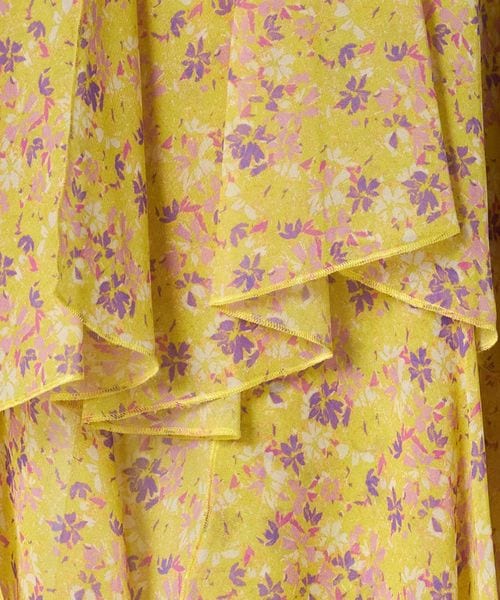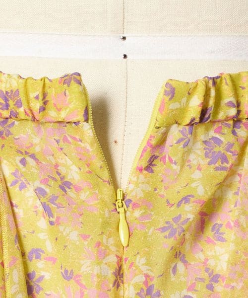 鮮やかなイエローカラーにのせたノスタルジックな小花柄が目を惹く一着です。