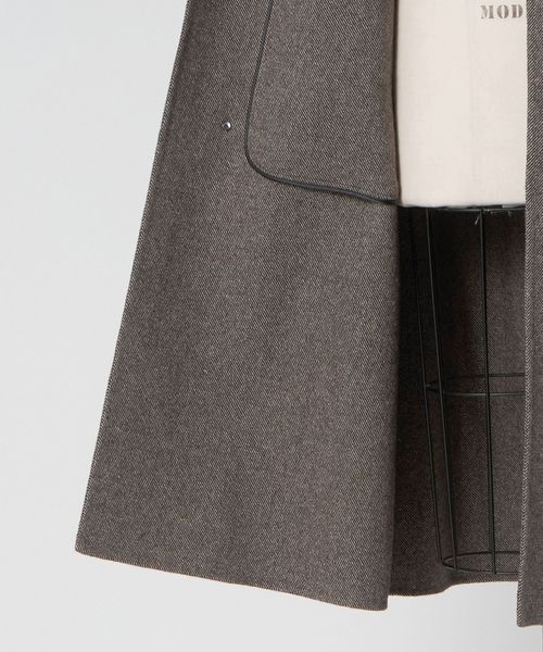ブラウンカラーベースの織り柄の表情がクラシカルな雰囲気をもたらすコート。