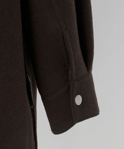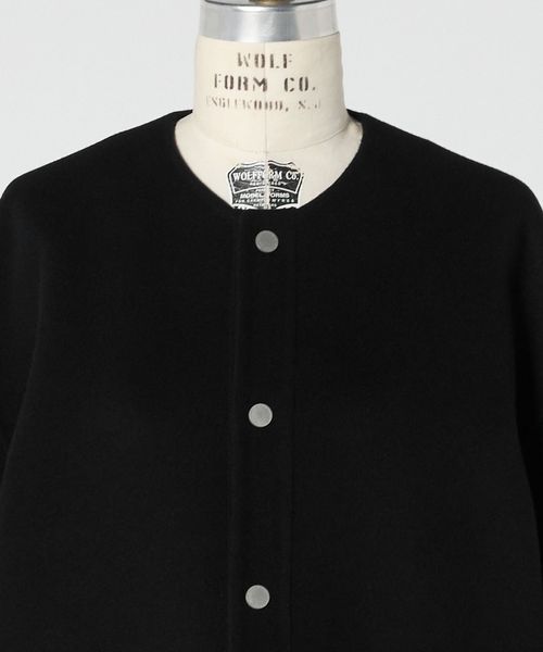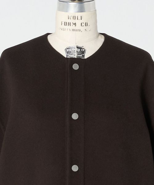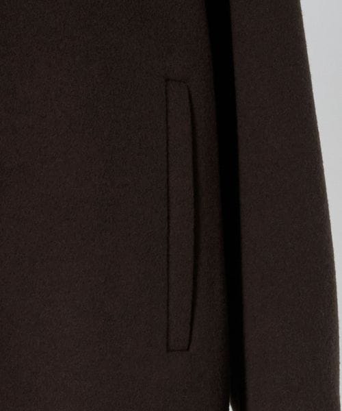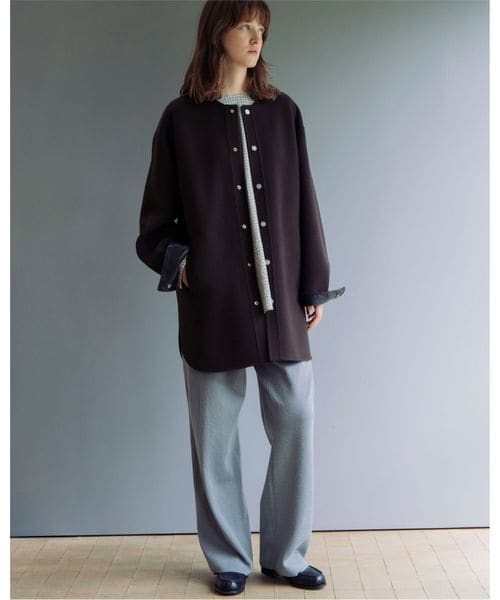 ミニマルなノーカラーデザインで仕上げたノーカラーコート