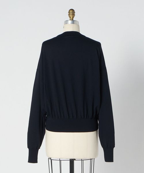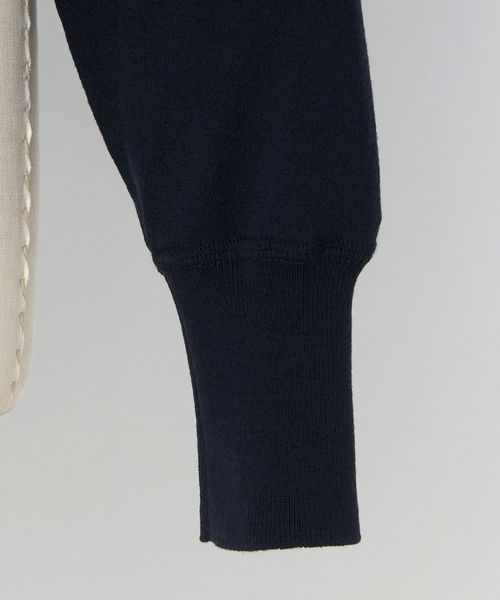 カットソーのディティールをニットに落とし込んだデザイんは、スタイリングに抜け感をプラスします。