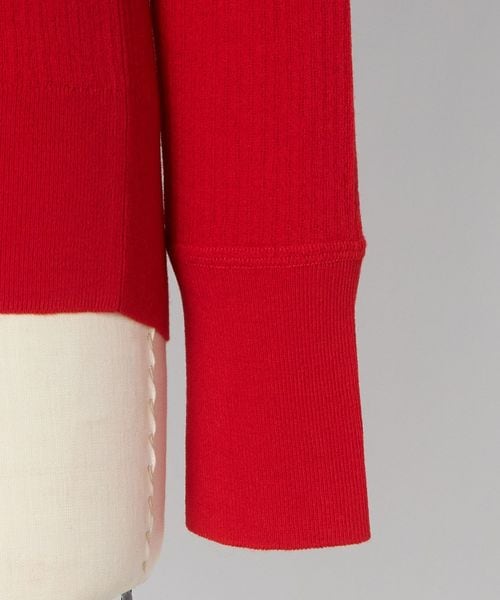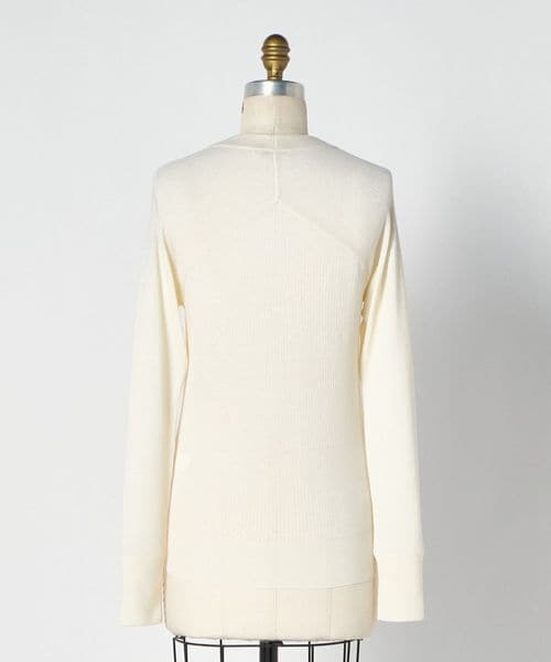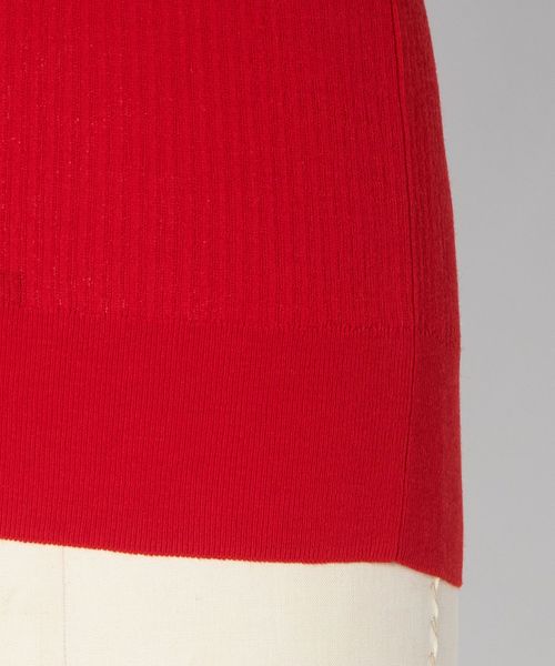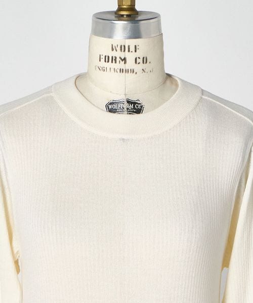 強撚の糸で編み立てたさらりとした手触りが特徴のリブ編みの繰るネックニット。
