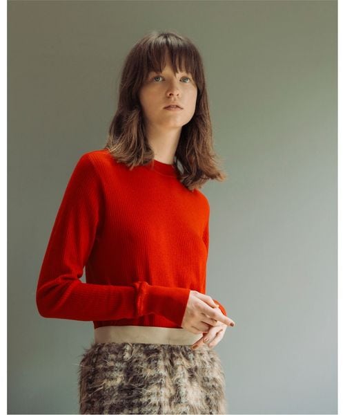 ランダムに切りかえたリブ編みのニット地がこなれた抜け感をプラス。