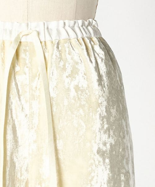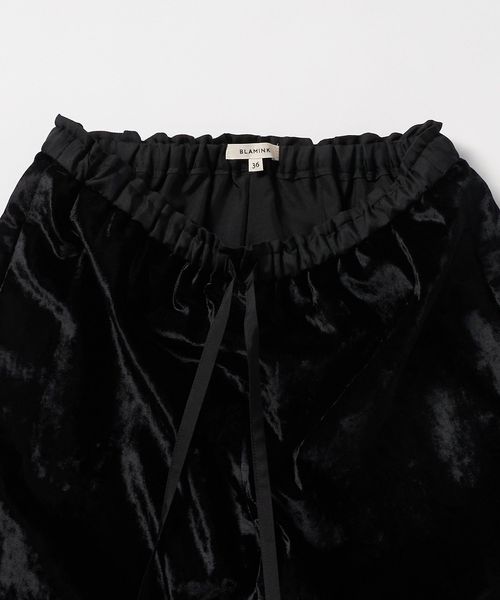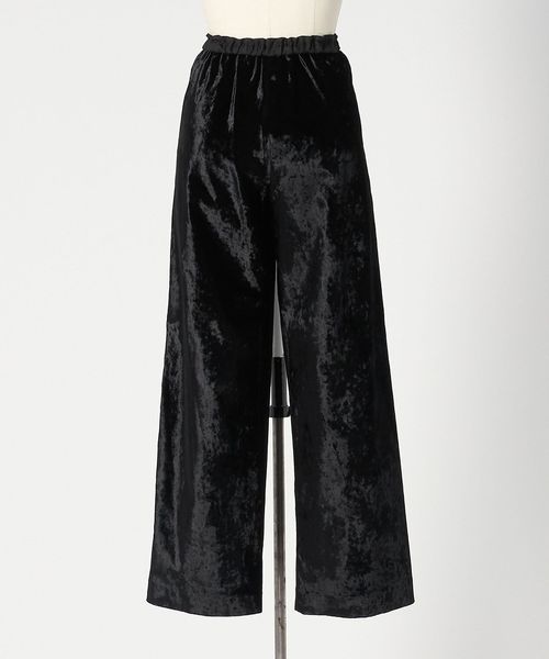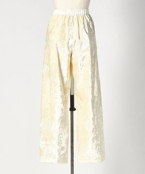 加工を施してくずれたベルベットの素材感が美しい光沢を放つパンツ。