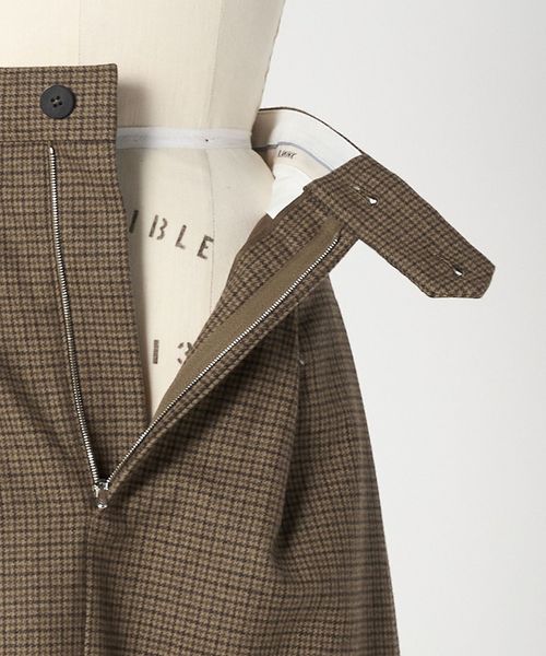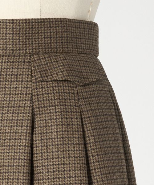クラシックでトラッドな雰囲気溢れるチェック柄の生地で仕立てたタックタイトスカート。