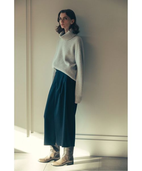 ゆったりとしたタートルネックをルーズに折りたたみ、抜け感を出すスタイリングもおすすめです。