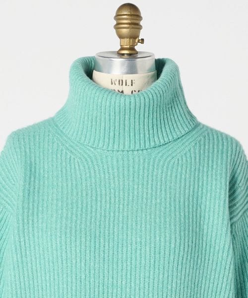 素材の風合いが堪能できるあぜ編みのタートルネックニット