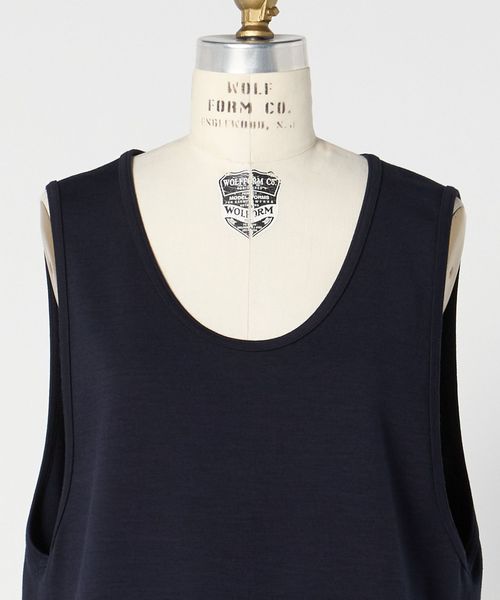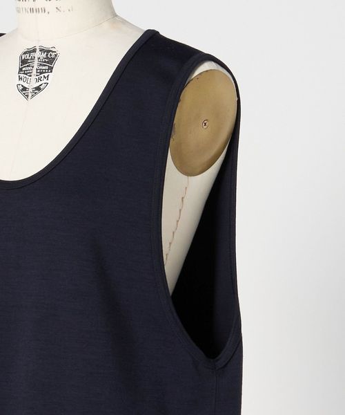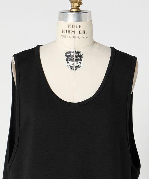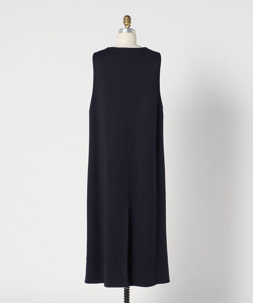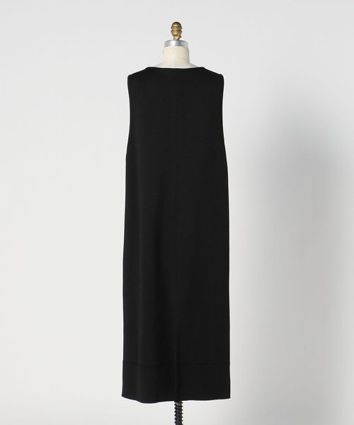 肩からすとんと落ちるストレートシルエットが美しいバックスリットの入った、Uネックのノースリーブロングワンピース。