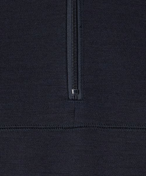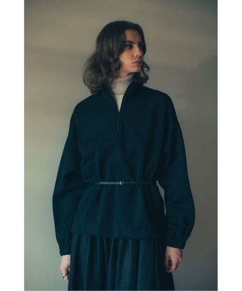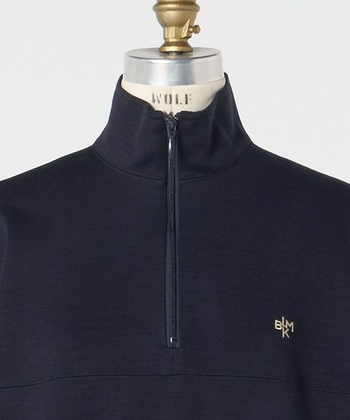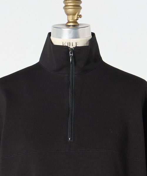 胸元の刺繍ロゴがさりげないアクセントになった、ハーフジップ仕様のロングスリーブトップス。