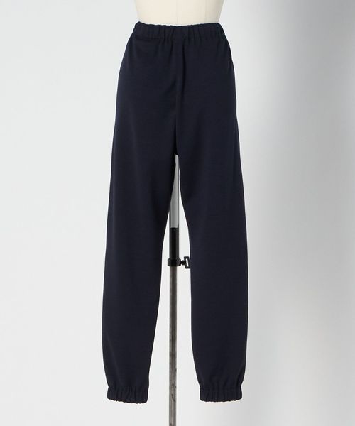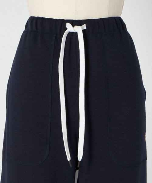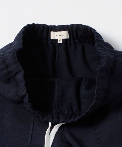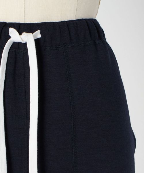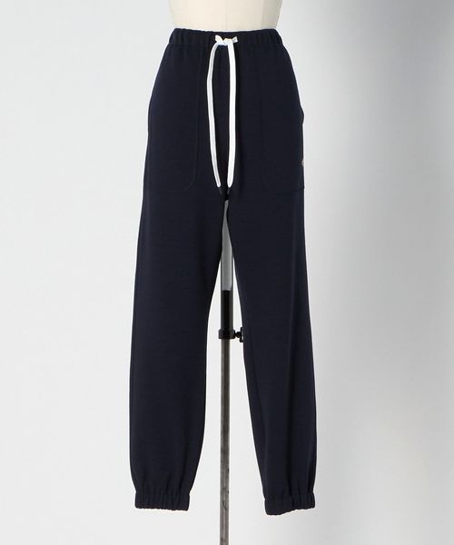 肉感のあるジャージー素材を使用した、ドローストリング仕様のパンツ。