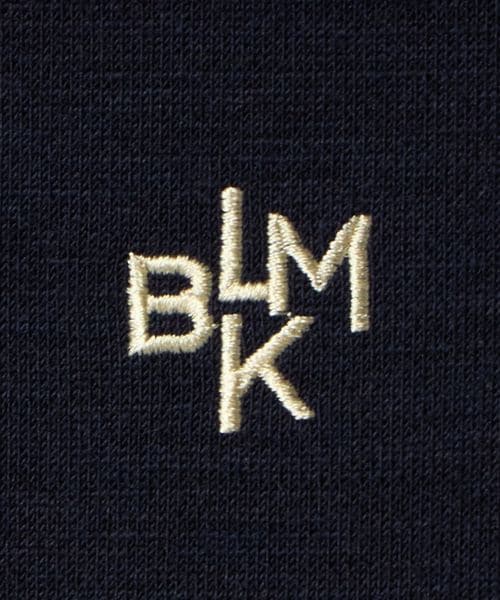 「BLMK」の刺繍がさりげないアクセントとなり、カジュアルな中にも洗練された雰囲気を演出します。