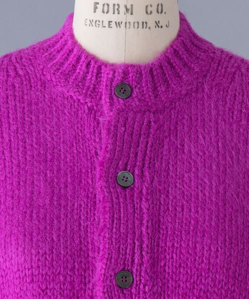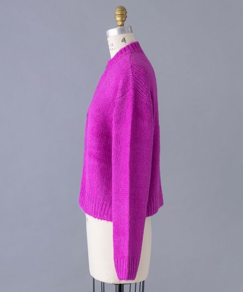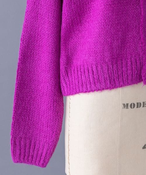 発色のよい艶やかなカラーリングが目を惹くクルーネックカーディガン
