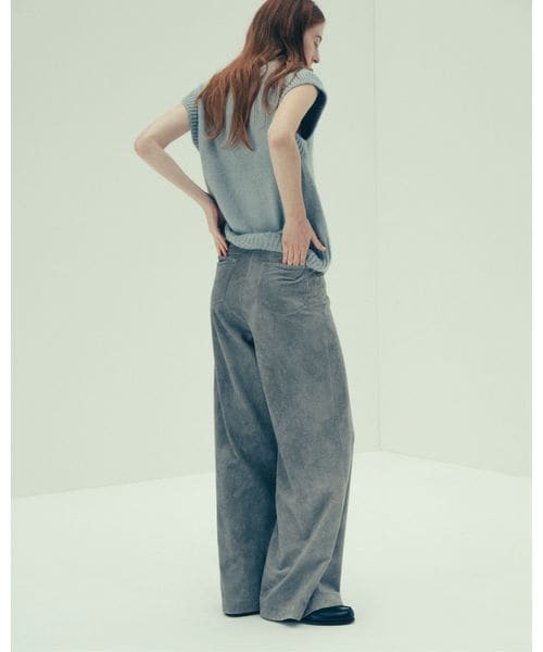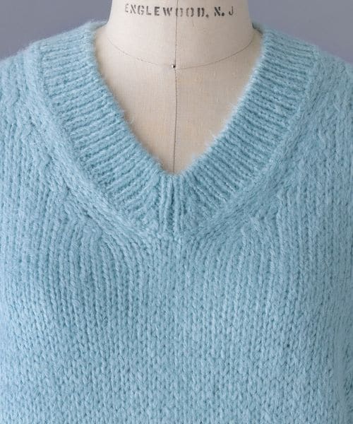 ワイドシルエットのボトムスともスタイリングしやすい、やや小さめなサイズ感で仕上げたニットベスト。