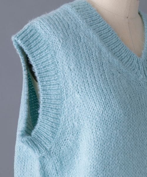 発色のよい艶やかなカラーリングが目を惹くニットベスト