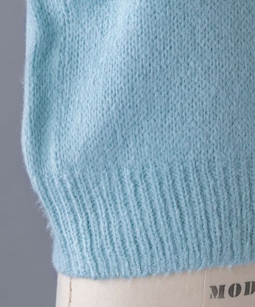 表面感のあるシルクのロービング糸で編み立てた、艶やかでいて上品な編み地が特徴。