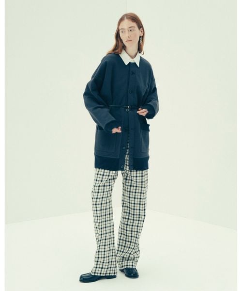 ヒップにかかる長めの丈感のカバーオール調のデザインで、スタイリングを上品に仕上げます。