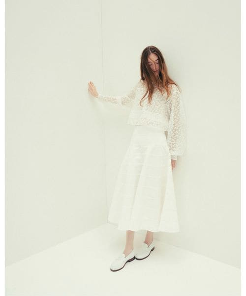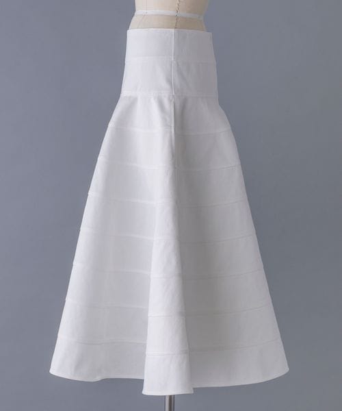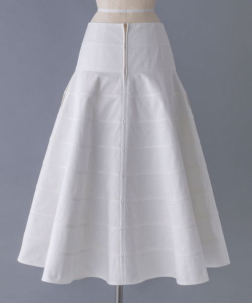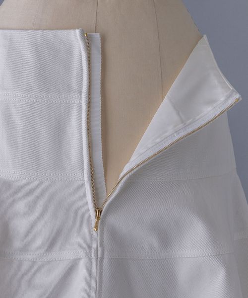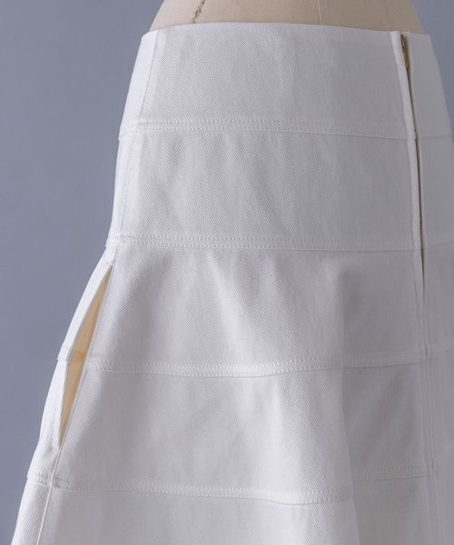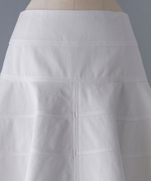 ホワイトデニムの切り替えデザインが特徴的なフレアスカート。