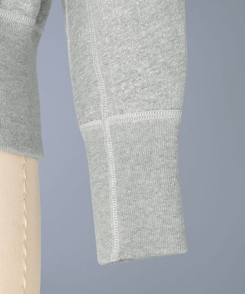 肉厚でいて、ふっくらとした杢調のグレーの裏毛素材で仕立てたベーシックな一品。