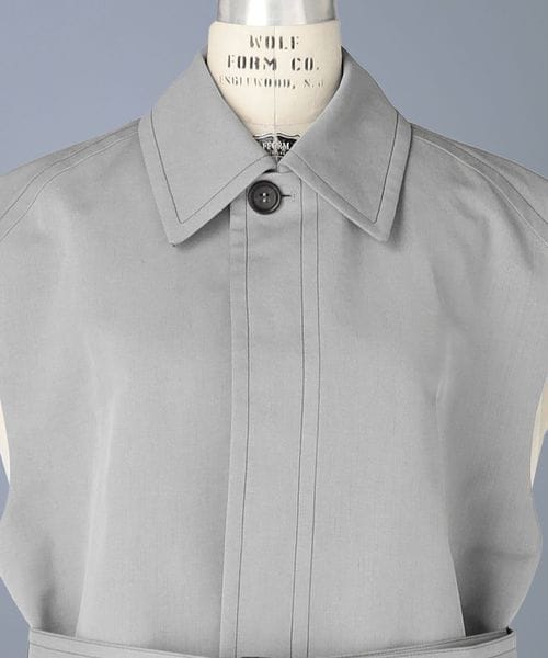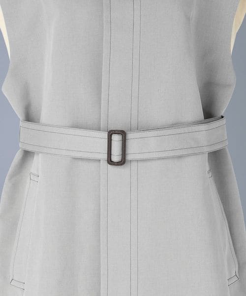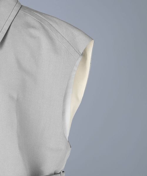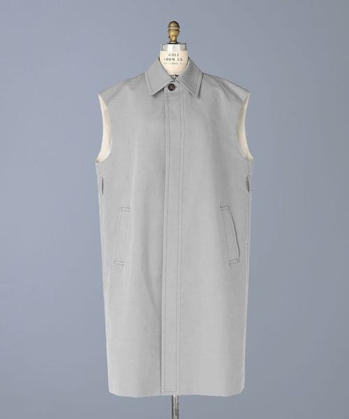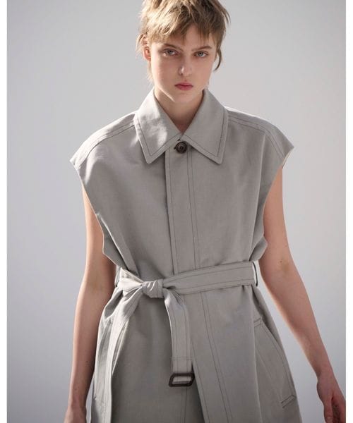 ハイトーンのグレーのカラーリングが軽やかさをプラスするスリーブレスコート。