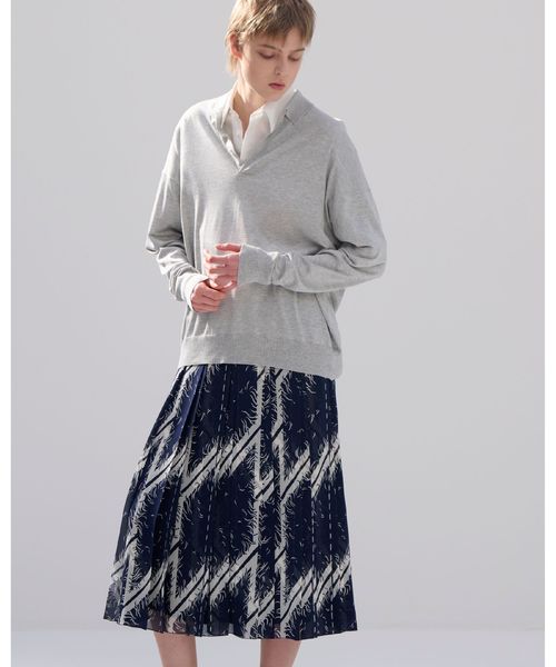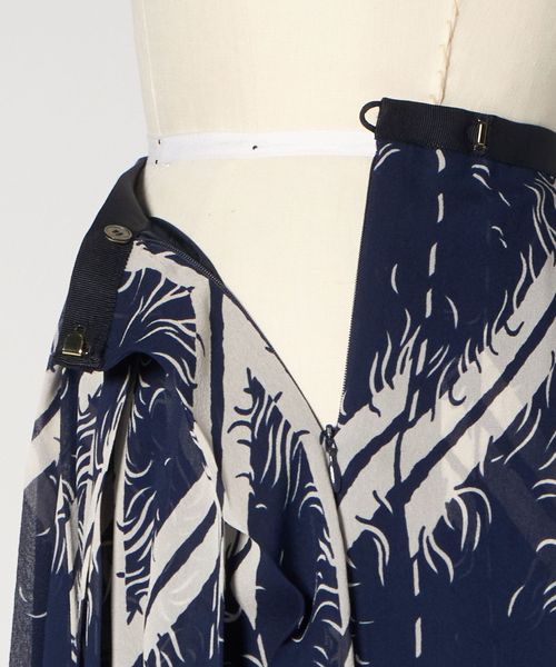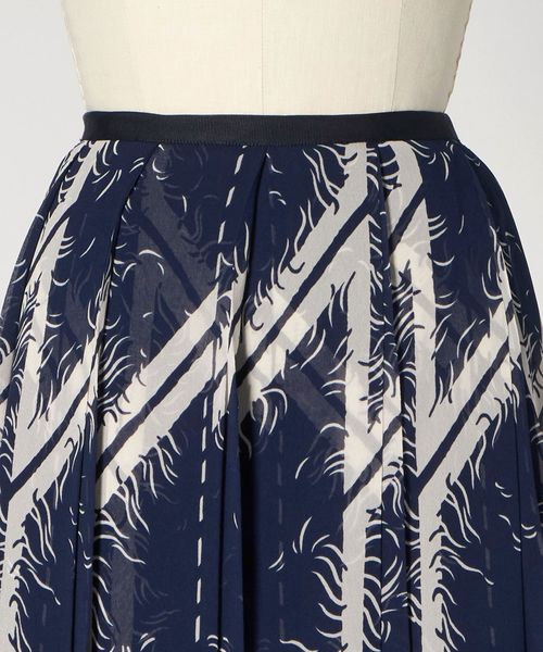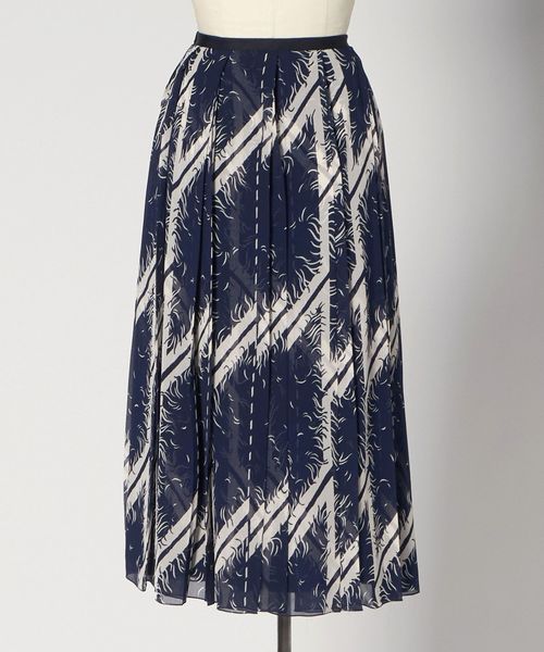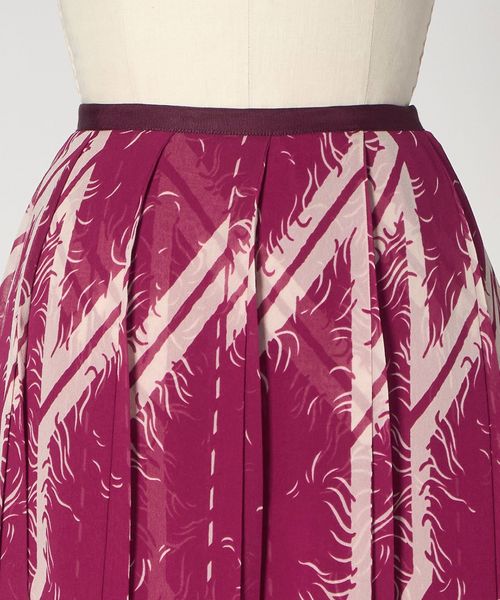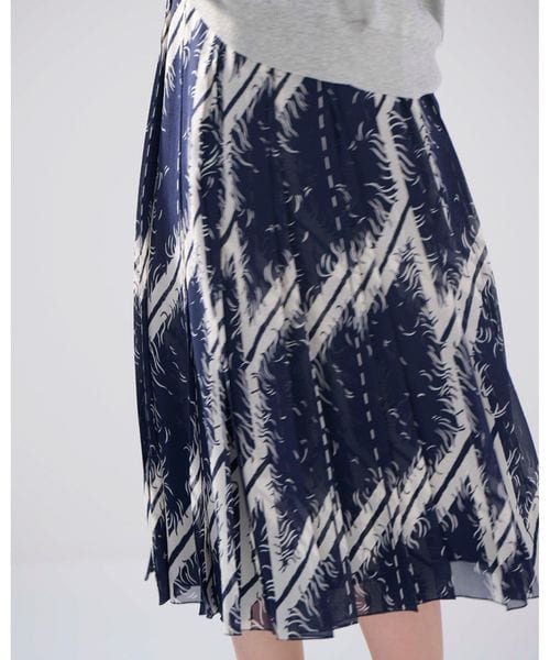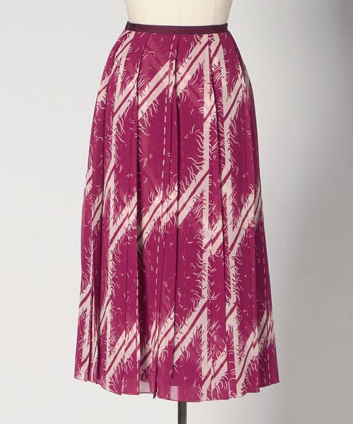 バイヤス状に入ったダイナミックなプリントが印象的なプリーツスカート。