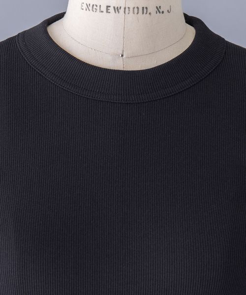 ネックは上品見えする浅めのクルーデザインで、シンプルでいて雰囲気のある佇まいがあります。