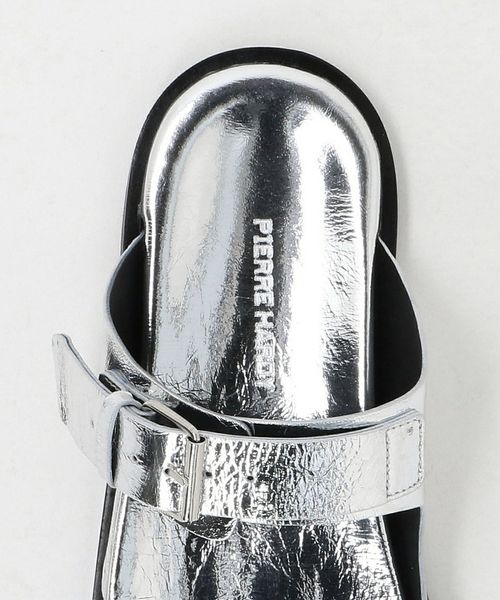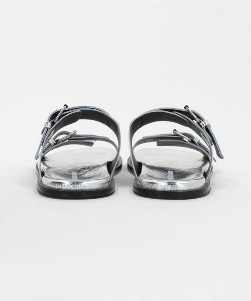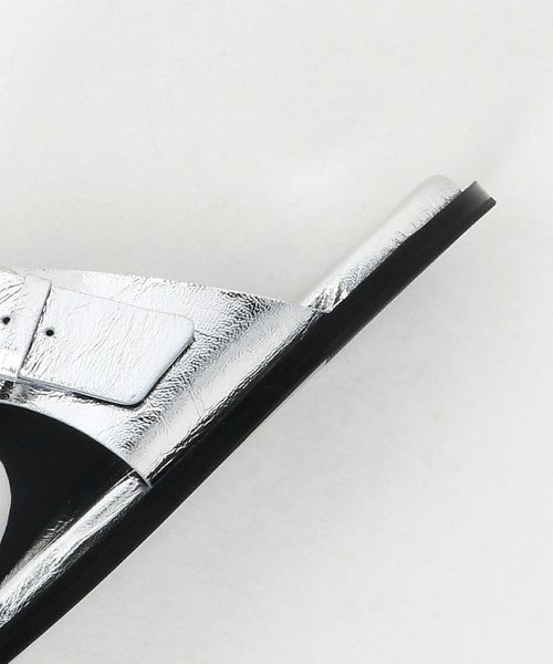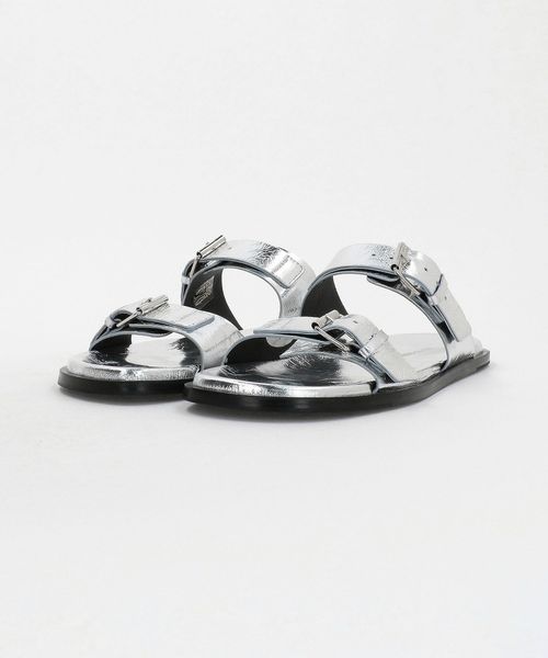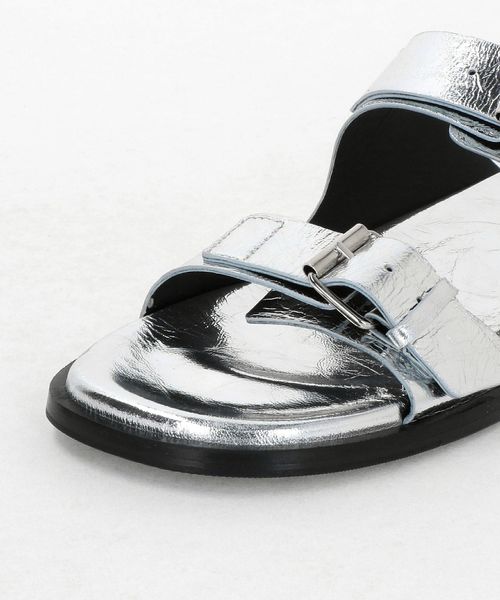 メタリックカラーのマテリアルが目を惹くフラットサンダル