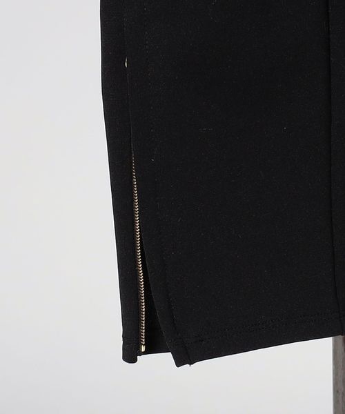 裾に美しいファスナーを配したブラックカラーのロング丈のレギンスパンツ。