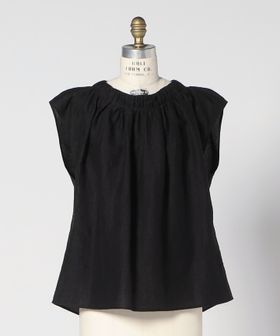 表情のあるギャザーネックがポイントのノースリーブブラウス