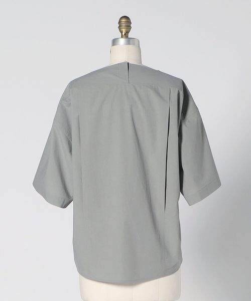 フロントはスクエアデザイン、バックはスリット開きのネックデザインがポイントのブラウス。
