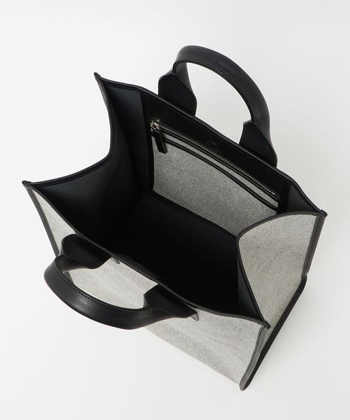 立体感あるスクエアなフォルムが特徴的なトートバッグ