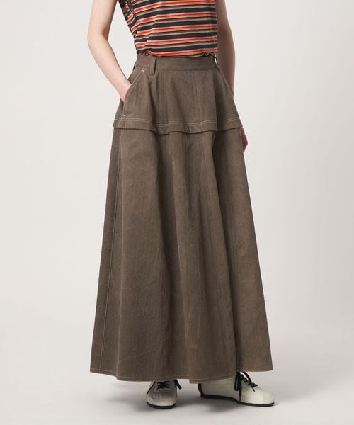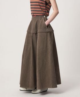 杉綾織りのコットン素材を低温染めで仕上げ、ムラのあるニュアンスが美しいゴアードスカート。