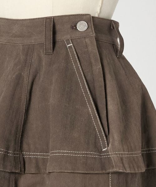 杉綾織りのコットン素材を低温染めで仕上げ、ムラのあるニュアンスが美しいゴアードスカート。