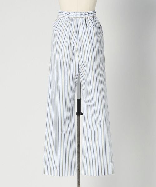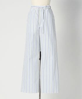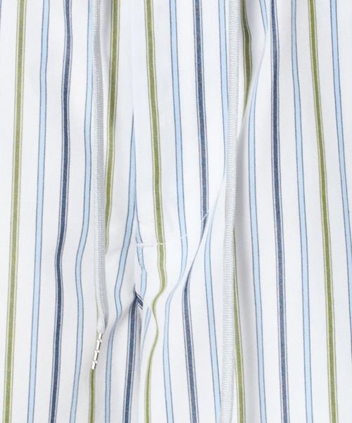 高密度に織り上げたコットン素材に、ブルートーンのストライプ柄をのせたドローストリングパンツ。