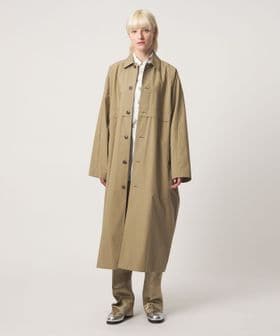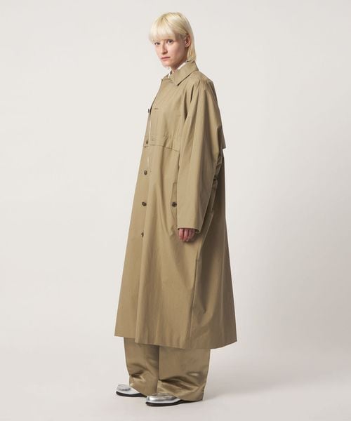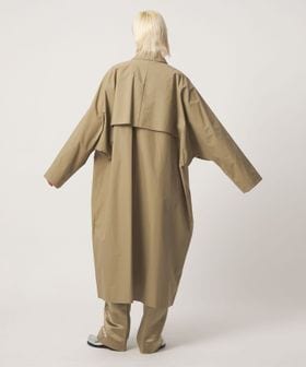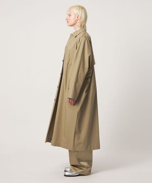 シックなベージュカラーの高密度コットンで仕立てた、ドルマンスリーブが特徴のスプリングコート。