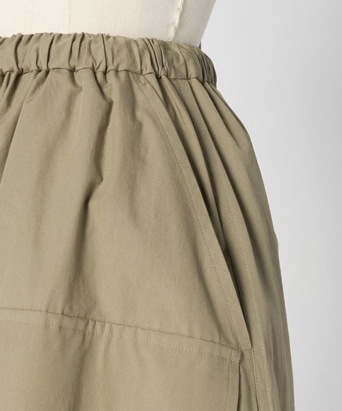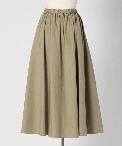 高密度に織り上げたベージュカラーのコットン素材で仕立てた、ウエストゴム仕様のギャザースカート。