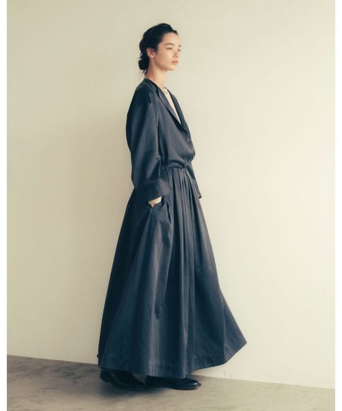 シルクコットンのサテン素材に、経年変化を思わせる奥行きのある風合いを加えたフレアスカート。