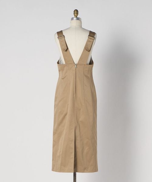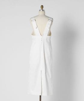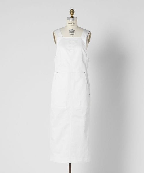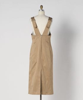 艶感のある毛羽の少ないコットン素材で仕立てたサロペットワンピース。